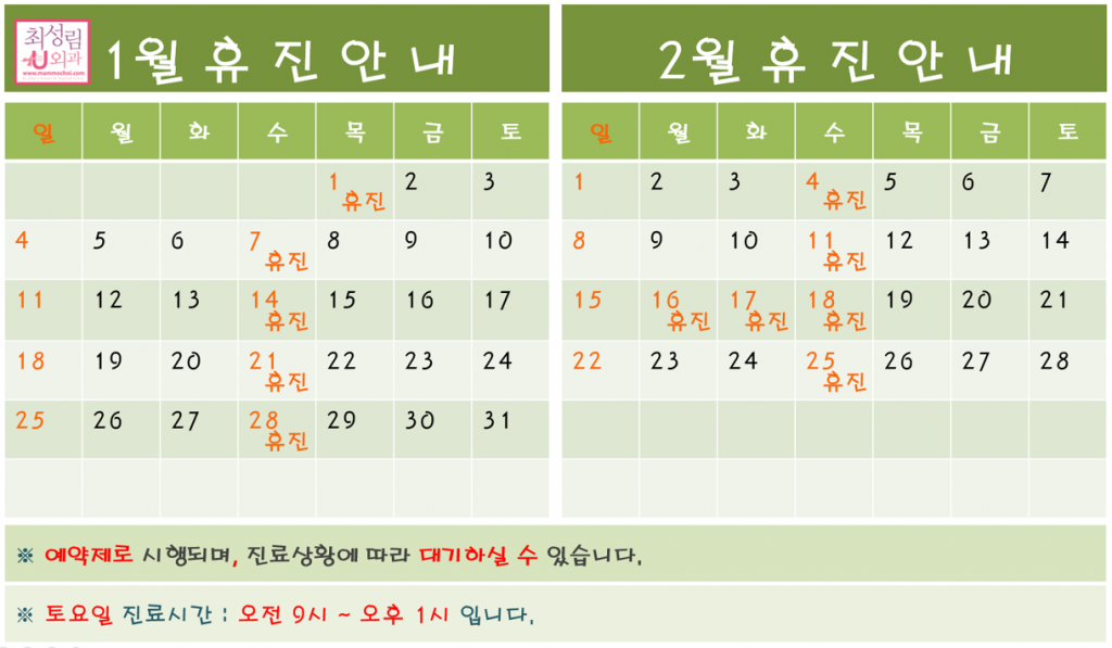 1. 2024년 05월 1일 부터 토요일 진료 마감 시간이 오후 1시로 변경됩니다.
